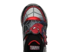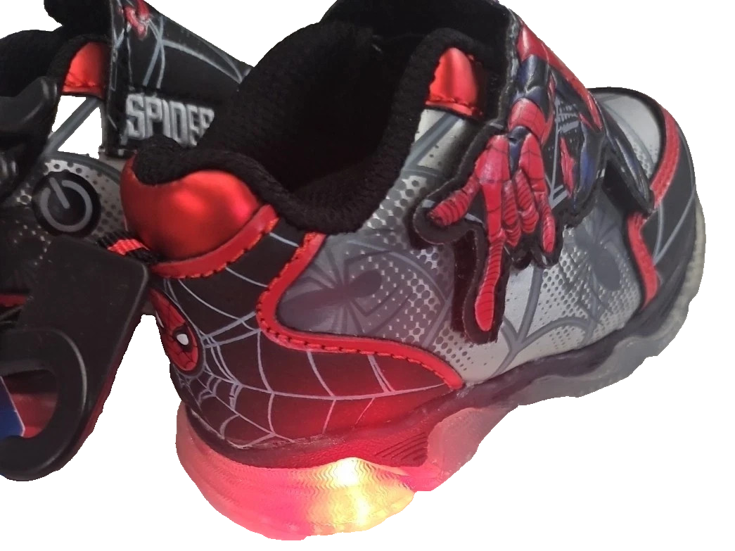 Toddler Shoes Shoe Size Length (in) Ball (in) Instep (in) 5 5 5 1⁄2 5 1 ⁄ 2 6 Spider-Man by Marvel Boys Toddler Athletic Light-up Silver Sneaker SOLE MEASUREMENT 6'' INCHES TODDLER Shoe Closure: Hook & Look Closure for Easy On/Off End Use: For Play, Running or Walking Athletic Style Materials: Metallic and Black PU with Marvel Spiderman Screen Print Art Features: Closed Toe; Non-Replaceable Plastic Encased Lithium Cell Battery Included in the Pair; Black/Red Striped Pull Loop to Slip-on Embellishments: Clear Translucent with 3 Red Motion Activated Lights and Black Sole-plate Plastic Outsole Clean & Care: Wipe Clean with Damp Cloth Country of Origin: China Brand Marvel Color Red Shoe size boy Age group Toddler Shoe category Toddler Boy Shoes Material PU
