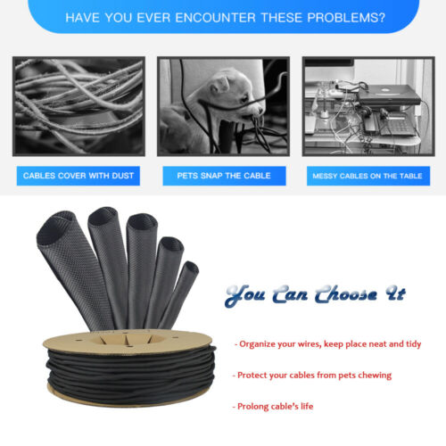 morethink , as an expert in the field of cable management,insist on providing customers with the top quality wire management products. Our cable management is used to wrap and protect wires & organize cables & hide and conceal wires in many application, e.g. Automotive,electronics, home and office etc. What is it used for? Braided wire loom helps protect and organize your wires, and can be used wherever wires exist. Popular uses include electronic cable management and automotive wire harness containment. How does it work? Split-sleeve design easily slips onto existing wires. Braided PET polyester is somewhat stiff and is resistant to abrasion, cuts, chewing, and heat. Do you have these problems? ⭐Our cable management sleeve is used for Hifi speaker hdmi automotive wires. ⭐Our cord protector keeps cat from chewing cables. Our cable protector is insulated. ⭐ e.g. Use For Automotive,electronics, home and office etc. The "split" design means you could add additional wires later and ensures easy access.Convenient for you to manage the wire. ⭐Our cable management sleeve is used for Hifi speaker hdmi automotive wires. ⭐Our cord protector keeps pets from chewing cables. Our cable protector is insulated. ⭐ e.g. Use For Automotive,electronics, home and office etc. Split Braided Cable Tube Can help you!!! Braided Split Cabling Management Sleeving suitable for various electric insulation The sleeving is split for quick and easy installation.no need to remove harness or remove plugs. 【Expandable & Flexible】- Our wire loom is split and easy to load wires. Once loaded, our braided cable sleeve will close on itself and perfect wire wrap. 【Neat & Tidy】- Say goodbye to cluttered cabling eyesores that are impossible to ignore. Our Split expandable braided cable organizer will keep your wiring setup organized and tangle-free. Ensures that the cables behind remain neat and tidy. Flexible braided material ensures it won't scuff up the room either. 【Adjustable & Easy to Install】- Protective cable covers can be cut to any length to match your organization needs. You do need to ether cut it with a HOT KNIFE to prevent fraying or melt the ends a bit with a lighter after you cut it. 【Convenient & Popular】The split design let wires come out anywhere because of “split”. No need to pass through wire plugs if wires and plugs cannot be separated 【Scope of application】High Quality, Split Braided Cable Sleeving Wrap Perfect for Industrial, Automotive, Household, and Marine Applications.application in wire harness, automatic equipment, railways, general manufacturing industry where wires and tubes need a tough and durable protection. 【Effect】resistant to various abrasions, reduct damage,arrange the harness cable.Prevent Pet From Chewing Cords 【Electrical wire routing solution】Self Wrapping Split Braided Sleeving for cable management (woven mesh tube) is braided by environment friendly polyester monofil. Split Braided Cable Sleeve Wrap are with good flexibility, fire resistance, abrasive resistance and thermal insulation performance. Our cable management sleeve: UL Recognized We are the direct source. We do wholesale for small businesses and manufacturer(s). Please call or send us a message through the eBay messaging system for a quote for wholesale pricing for rolls and bulk orders.