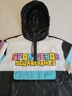The Nickelodeon SpongeBob Squarepants Windbreaker is a colorful and fun pullover featuring a high neck with a zip closure and long sleeves. Made from polyester microfiber fabric, this 1/4 zip windbreaker is machine washable and has a solid pattern with a front pouch accent. The cartoon-inspired design, featuring the iconic SpongeBob characters, is perfect for fans of Nickelodeon's classic 90s show. With hooded pockets and a regular fit, this windbreaker is a versatile and stylish choice for all seasons. Pre-owned Like New