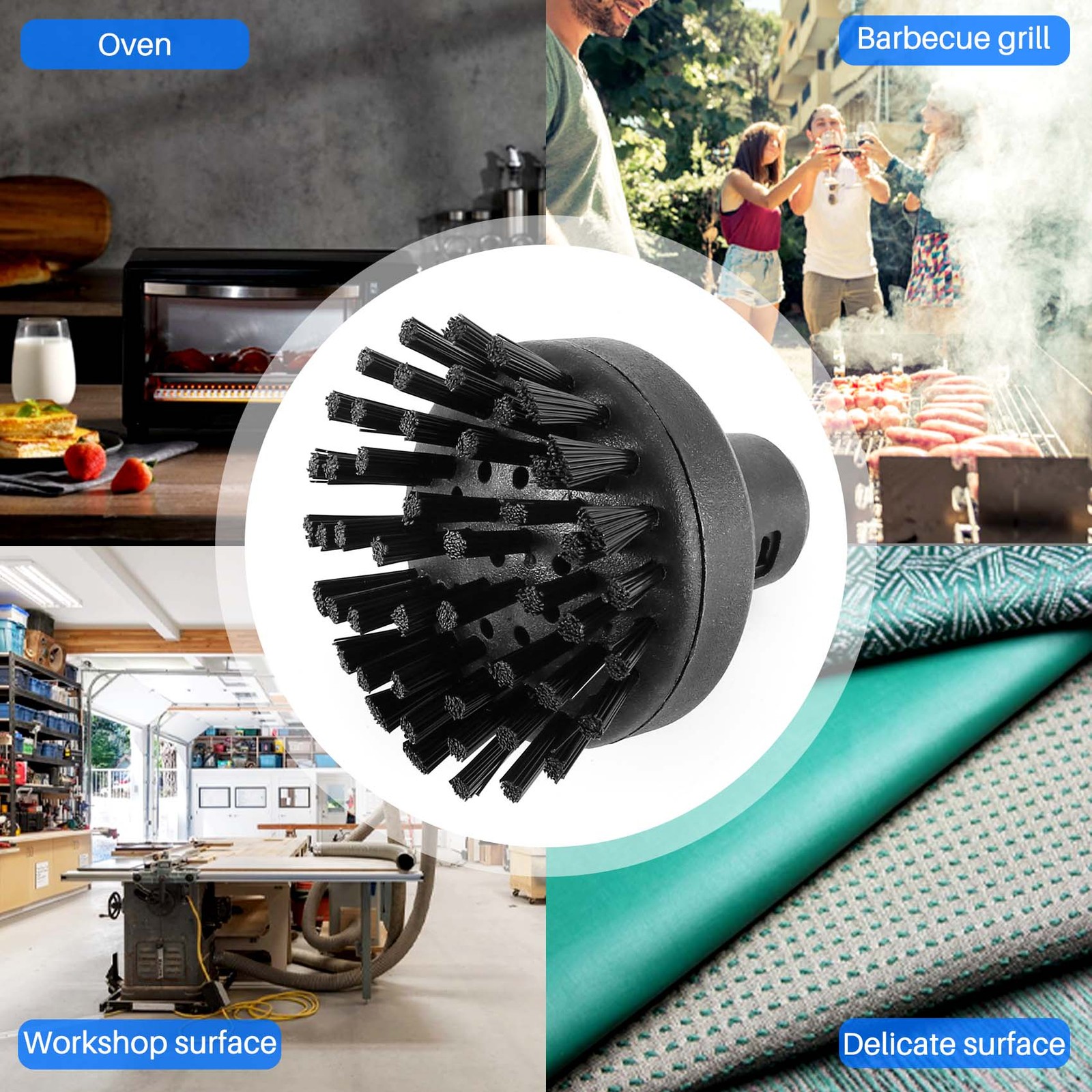 Steam Cleaning Brush Nylon Brush Bristle Cloth Steam Cleaner Parts for SC12729 cleaning brushes can be clearly distinguished and used for different tasks. Perform sanitation work in different locations (sanitary areas, kitchens, accessories, etc.). Very effective in a variety of applications, such as removing stubborn and deep-rooted dirt on ovens, barbecue grills, workshop surfaces, tiles, metal products, and all soft surfaces (including soft fabrics and furniture, etc.). Scope of application: suitable for SC1 SC2 SC3 SC4 SC5 SC7 Colour:Black Material:PVC+Nylon Size:6.3x7.5cm Package Contents: 1 * Brush head