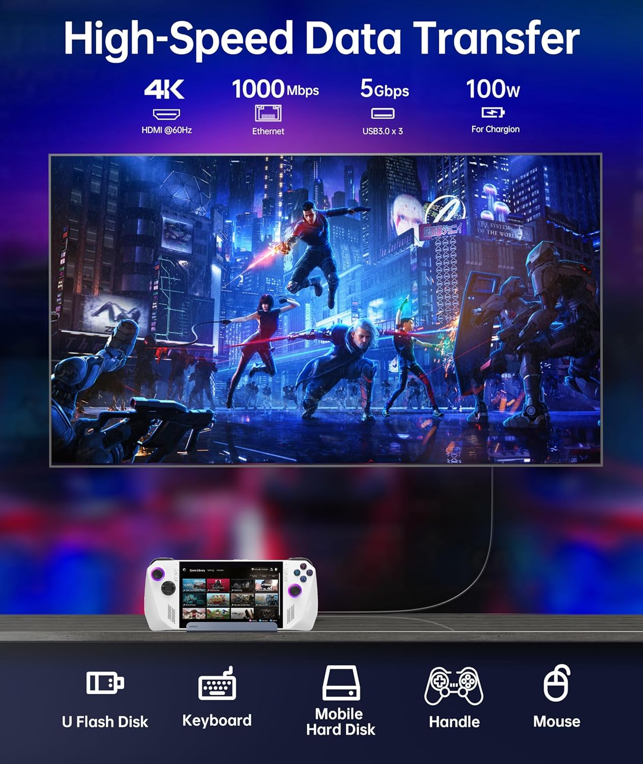 Store New Arrivals Add to Favorite View Feedback Contact Steam Deck Dock 4K 60Hz, 6-In-1 Docking Station Compatible with Lenovo Legion Go, Steam Deck OLED, ASUS ROG Alloy, Steam Deck Accessories with 3 USB-A 3.0, 100W PD, 1000M RJ45, Aluminum Alloy Shell Description Item model number AS0206 Total USB Ports 4 Color Grey 6 IN 1 Steam Deck Dock(HDMI) Wattage 1E+2 Country of Origin China Compatible Devices function(f) {var _np=(window.P._namespace("DetailPageProductOverviewTemplatesJava"));if(_np.guardFatal){_np.guardFatal(f)(_np);}else{f(_np);}}(function(P) { P.when('A').execute(function(A){ A.on('a:truncate:po-attribute-truncate-3:updated', function(data) { var isTruncated = !data.truncateInstance.getIfTextFits(); var seeMoreElement = document.getElementById('po-attribute-see-more-id-3'); if(seeMoreElement) { seeMoreElement.style.display = isTruncated ? '' : 'none'; } }) }); })); Valve Steam Deck, ASUS ROG Ally, Laptops, Monitors, Projectors, Televisions, Mouse, Keyboards, Ethernet, IPhone 15 Pro Max,iPhone 15 Pro, Type C Smartphones, iPad Air/Pro/Mini See more Item Weight 156 Grams Number of Ports 6 Hardware Interface USB Type C, Ethernet, HDMI, USB 3.0 Total HDMI Ports 1 Product Dimensions 7.5"L x 3.9"W x 1"H 【6-in-1 Docking Station】This Steam Deck OLED Dock, featuring a 4K@60Hz HDMI output and a Gigabit Ethernet input, is designed to enhance your experience with devices like the Valve Steam Deck, ROG Ally, and Legion Go. It also boasts three USB-A 3.0 ports and a USB-C charging port for added convenience. Please note that this Stream Deck Dock is not suitable for protective cases equipped with kickstands such as the ROG Ally case; it's crucial to ensure your case thickness remains under 2mm. 【4K@60Hz HDMI Output】The Steam Dock is a crucial component of an accessory line that includes the Lenovo Legion Go and ROG Ally. It features a 4K@60Hz HDMI 2.0 output, catering to users with high-resolution display requirements. When an external 4K monitor is connected to this premium docking station, it delivers a crisp and smooth visual experience that can enhance the experience when used in conjunction with Lenovo Legion Go accessories or ROG Alloy accessories. 【Fast Charging】TThe Legion Go Dock, a must-have among Stream Deck accessories, offers an impressive 100W power delivery that ensures quick charging for your Steam Deck, ROG Ally and Legion Go. When paired with the original charger, it charges at maximum speed. Note: The Steam Deck's top charging speed is 45W. Also, the ROG Ally Dock fully supports its 30W Turbo mode. Just remember to use a 100W charger as per guidelines for best performance with these essential gear additions. 【Stable Network & Fast Data】The ASUS ROG alloy accessories complement the Valve Steam Deck OLED, lenovo legion go dock, enhancing its capabilities. This docking station for Steam Deck, asus rog alloy, lenovo legion go provides not only a high-speed gigabit Ethernet connection for top-tier with minimal latency but also three USB 3.0 ports for rapid 5Gbps data transfer and seamless accessory integration—perfect for gamers demanding peak performance. 【Universal Compatibility】The Steam Deck Stand, a top pick among Steam Deck accessories, is compatible with handhelds like Valve's Steam Deck, Legion Go, and ROG Ally X. It supports iPads and Android phones via USB-C and integrates with ROG Ally accessories. Known as the ASUS ROG Alloy Docking Station or Legion Go Docking Station or Steam Deck Docking Station, it broadens player's connectivity options. Product Description 1 Gigabit Ethernet 2 USB 3.0 x 3 3 USB C PD Charging 4 compatibility How can I ensure a 4K @ 60Hz output? Use an HDMI to HDMI 2.0/2.1 cable shorter than 15 feet and minimize the use of cable adapters. Manually switch to desktop mode and set the output to 4K @ 60Hz. Adjust settings in- if necessary. Why isn't the Ethernet functioning? After the SteamOS upgrade, you'll need to manually switch to desktop mode and connect to the wired network. Turn off WiFi or prioritize the wired connection. Why do external devices such as mouse and keyboard not function properly when docked? When docking your Steam Deck, ensure to connect your power adapter to provide sufficient power supply. Can the USB-C port on the dock output video? What is the maximum Ethernet speed? No, the USB-C port is for power input only. The maximum Ethernet speed is 1000Mbps, but actual speeds depend on your network bandwidth. Why can't audio be played on the monitor or TV? In Steam settings, click "Audio", select the output, then click "External Devices" to transmit audio to the monitor or TV. (If the display device supports audio) Discover the perfect handheld console Dock for you Add to Cart Add to Cart Add to Cart Add to Cart Customer Reviews 4.3 out of 5 stars 311 4.0 out of 5 stars 74 3.4 out of 5 stars 26 3.2 out of 5 stars 20 Price $29.99 $ 29 . 99 $39.99 $ 39 . 99 $59.99 $ 59 . 99 $75.99 $ 75 . 99 HDMI Output (Max) 4k@60Hz 4k@60Hz 4k@60Hz 4k@60Hz Display Port Output (Max) -- 4k@60Hz -- 4k@60Hz USB-A Data Port(Max) 3*USB 3.0 (5Gbps) 3*USB 3.0 (10Gbps) 3*USB 3.0 (10Gbps) 3*USB 3.0 (10Gbps) Enthernet(Max) 1000Mbps 1000Mbps 1000Mbps 1000Mbps Charging Output(Max) 100W 100W 100W 100W M.2 Transfer Speed (Max) -- -- 10Gbps 10Gbps Compatible with Steam Deck/ROG Ally Steam Deck/ROG Ally Steam Deck/ROG Ally Steam Deck/ROG Ally ABOUT US We offer the best prices around on high quality products. Our E-store includes media such as books, movies, music and games while offering electronics, toys, sporting apparel, clothing, tools, general home, garden items and more. SHIPPING We are always working hard to ensure your package arrives as soon as possible. Please understand that some factors like weather, high postal traffic, and the performance of shipping companies are outside of our control. We offer free shipping to the lower 48 states and ship within 2 business days of payment, usually sooner. We do not accept P.O. Boxes. Please pr