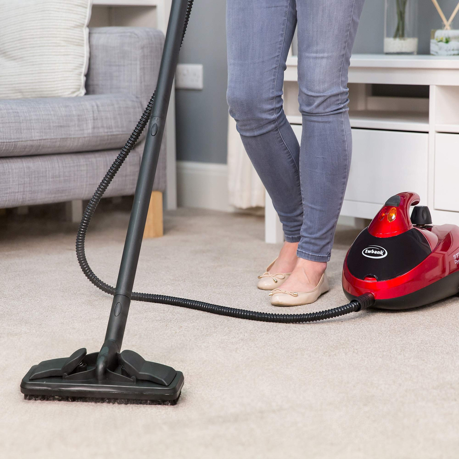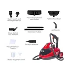 The SC1000 Steam Dynamo is a compact powerful cleaning device that uses steam to eliminate grease, dirt, and stains. It comes with versatile attachments suitable to clean from floor to ceiling, for both home and car interior. With a high temperature of over 200°F, a steam-on-demand trigger, and various brushes and attachments, it can handle difficult areas such as sinks, bathtubs, corners, tiles, and rugs. The window/tile attachment ensures streak-free cleaning. Accessories can be conveniently stored in the front compartment, for a quicker and easier home cleaning. Use it on hard floors, work surfaces, high-touch spots, and even upholstery. Environmentally friendly and chemical-free, the Steam Dynamo disinfects using water only. Its 51-ounce tank capacity provides 45 minutes of continuous steam cleaning, and the 8.2-foot power cord ensures extra mobility during use. Multi-surface: Suitable for grout, tile, car interior, hard floors, carpets, upholstery, mirrors, and more. Great for home use: Improves cleaning kitchen, bathrooms, and windows. Variety of Accessories: 2 x extension tubes, jet nozzle, floor head cleaner with brush, floor tool swivel adapter, nylon brush, mini nylon brush, straight adapter, water jug & funnel, and a reusable floor towel. Compact: attachments fit in the front compartment for convenience. Chemical-free cleaning, degreasing, and deodorizing. High Pressure: Hot pressurized steam blast obliterates toilet and bathroom grime heating up to over 200°F. Non-stop steam cleaning: large 51 fl. oz. tank capacity produces 45 minutes of continuous steam from a single fill. Powerful: 1500W boiler. Steam on demand up to 54 psi.