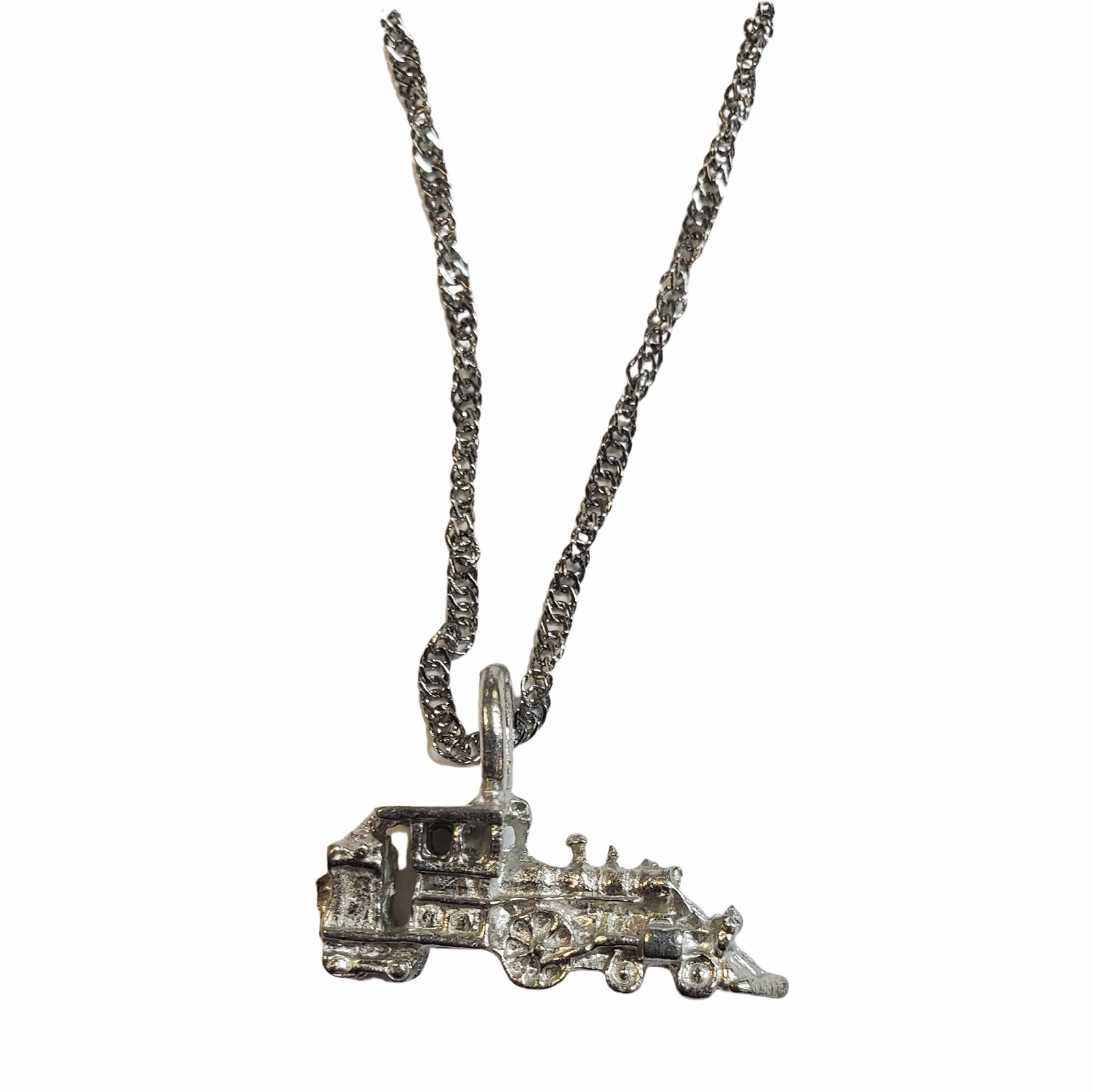 This pewter train charm necklace makes a great gift for any train lover. It is a unisex necklace. Available in a black gunmetal or silver finish. The chain is stainless steel and 1.5 mm and measures 18 inches with a 2 inch extender. Comes in a gift box