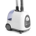 Portable standing steamer gives you desired steaming results Removes wrinkles and kills 99.9% of germs in all types of fabrics Includes a pant press, folding rack and clips for convenience Comes with a fabric brush for versatile usability Shuts off when overheated or if the water tank is empty Eliminate Wrinkles and Deodorize your Fabrics With SAG-12 Garment Steamer SAG-12 comes with a large water tank of 1.5 l powered by 1500 W for a powerful steam. With continuous steam for up to 50 minutes, it allows you to steam multiple garments in one sitting. The strong steaming power can help you remove wrinkles not only from delicate clothes, but also from thick fabrics that include cotton, linen, silk and more. It doesn't just remove wrinkles but also kills up to 99.9% of germs, leaving your garments, bedding, curtains, table linens and more clean, fresh and wrinkle free. Ditch the dry cleaners and save time and money steaming your suits, blouses, dresses or any other garments in the comfort of your home. This at-home steamer is powerful, but compact enough to store away and equipped with wheels to allow smooth and easy portability, the SAG-12 is a must-have product for any household.SAG-12 is equipped with an automatic power-off feature to tackle overheating and water shortage issues. Also included are pants press, fabric brush, folding rack, holding clips, a steaming board and a patented Cool-Touch hose to reduce surface temperature. Appliance Type: Clothes Steamer Color/Finish: White Color/Finish Family: White Continuous Steam Time (min.): 50 Features: Automatic Shut-Off,Cool-Touch Exterior,Detachable Water Tank,Heat Resistant Handles,Power On Light Indicator,Water Level Indicator Product Weight (lb.): 12 lb Returnable: 30-Day Small Electric Product Type: Garment Steamer Steamer Type: Standing Water Capacity (qt.): 1.59 qt Wattage (W): 1500 W Cord Length (ft.): 6 ft Product Depth (in.): 18 in Product Height (in.): 63 in Product Width (in.): 7 in Steam Head Width (in.): 6 in