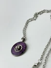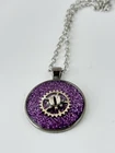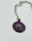 handmade necklace with clock gears with purple glitter for eye catching view. Fun in nature, wear casually or with glamour.