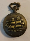 Up for sale is a Steam Train metal pocket watch, Quartz. A Steampunk, Locomotive themed watch. This listing comes with a bonus pocket watch. The second watch in this listing depicts the U.S.S. Constitution ship. This watch is without chain. Both of these watches have no production information. Both of these watches are intended for replacement parts, or repair. Please see the pictures for further details.