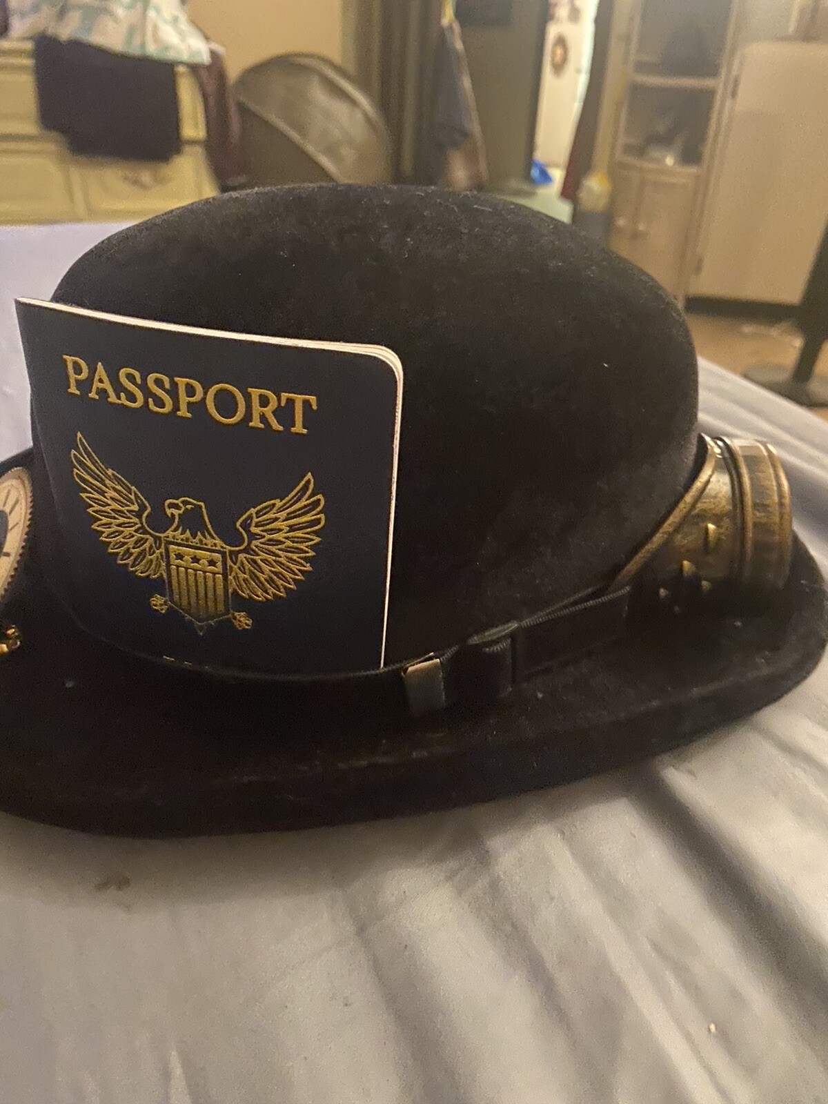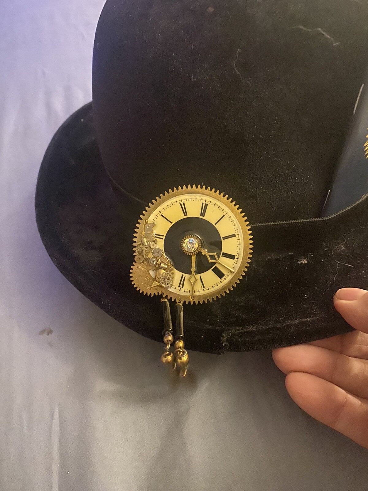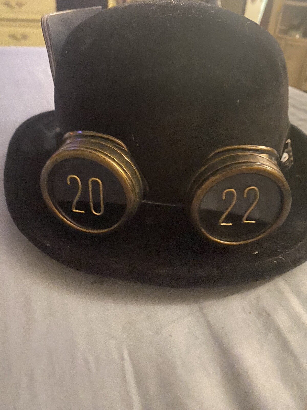 Steam Punk Time Traveler Hat. One of the goggles lenses are loose should be an easy fix hat is a faux velvet felt