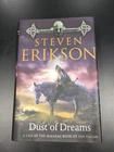This is a Signed copy of a Dust Of Dreams by Steven Erikson. This book is in near perfect condition, and it has never been read. The only reason I say it is in near perfect condition is because it has a slight tear at the binding on page 815 (of 816), the next to last page, where it has pulled away from the binding. I did not discover this issue until I was taking pictures for this listing. I took this book out of the original shipping packaging to me to take the pictures for this listing. Other than that, this book is in great condition (see pictures). This is the ninth book of The Malazan Book Of The Fallen Series, which is one of my personal favorites.