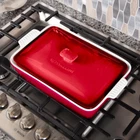 BOLD ITALIAN FLAVOR AND FLAIR - Rossallini fine Italian stoneware makes your culinary delights look as good as they taste! Your main dishes will take center stage in beautiful, durable, show-stopping Italian style! OVEN TO TABLE TO FREEZER - Rated from an arctic -65 degrees up to a red-hot 500 degrees F, Rossallini high-fired stoneware features a non-porous enamel finish, maintains even temperatures while baking, prevents scorching, and outperforms ceramic and cast iron dutch oven cookware in the microwave, in the oven, on the table, and in the freezer. TRULY UNIQUE HANDMADE ART - Rossallini Signature series stoneware dishes, bowls and pots are hand-crafted, making each piece unique and beautiful. Use as classic serving dishes, vintage 9x13 lasagna pan, rustic stone roaster or French baker, microwaveable ovenware, nonstick potluck dinner or roasting pot, or Thanksgiving showpiece! EVERYTHING SAFE - Safe for the kitchen, dishwasher, microwave, oven, broiler, grill, and freezer - everything except cooking over the stove (don't use with direct heat). Rossallini signature stoneware features a flameproof, non-porous enamel finish to resist odors, chipping, cracking, crazing and rippling. Glazed interior prevents scratches, stains and knife marks, and easily releases food for fast cleanup. EXTRA LARGE 4 LITER CAPACITY - Holds up to 4.23 quarts, measuring 33 x 23 x 10 cm, 13x9 and 2.5 inches deep, the perfect size to bake and serve your best Lasagna, Manicotti, Penne Pasta, Ziti, Casseroles, Mac and Cheese, or Cobblers! Features traditional scalloped side handles and reverse-tapered knob on the lid for a secure grip, even through oven mitts! Rossallini Stoneware Casserole Dish Bakeware Set with Lid , Covered Rectangular dinnerware, Large 4 Quart, 13 by 9 Inch BOLD ITALIAN FLAVOR AND FLAIR - Rossallini fine Italian stoneware makes your culinary delights look as good as they taste! Your main dishes will take center stage in beautiful, durable, show-stopping Italian style! TRULY UNIQUE HANDMADE ART - Rossallini Signature series stoneware dishes, bowls and pots are hand-crafted, making each piece unique and beautiful. Due to the handmade uniqueness, there may be subtle variations from piece to piece. OVEN TO TABLE TO FREEZER - Rated from an arctic -65 degrees up to a red-hot 500 degrees F, Rossallini high-fired stoneware features a non-porous enamel finish, maintains even temperatures while baking, prevents scorching, and outperforms ceramic and cast iron dutch oven cookware in the microwave, in the oven, on the table, and in the freezer. EVERYTHING SAFE - Safe for the kitchen, dishwasher, microwave, oven, broiler, grill, and freezer - everything except cooking over the stove (don't use with direct heat). Rossallini signature stoneware features a flameproof, non-porous enamel finish to resist odors, chipping, cracking, crazing and rippling. Glazed interior prevents scratches, stains and knife marks, and easily releases food for fast cleanup. EXTRA LARGE 4 LITER CAPACITY - Holds up to 4.23 quarts, measuring 33 x 23 x 10 cm, 13x9 and 2.5 inches deep, the perfect size to bake and serve your best Lasagna, Manicotti, Penne Pasta, Ziti, Casseroles, Mac and Cheese, or Cobblers! Features traditional scalloped side handles and reverse-tapered knob on the lid for a secure grip, even through oven mitts! ADD TO CART WITH CONFIDENCE in our 100% satisfaction guarantee! If you are not satisfied with your Rossallini product, just let us know so we can arrange to exchange it. FROM OUR FAMILY TO YOURS, thank you for buying the best - ROSSALLINI!