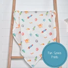 Our Muslin Swaddle Blanket is designed specifically for babies, crafted from 100% premium cotton for softness and breathability. With dimensions of 47x47 inches, it's ideal for wrapping your little one and doubles as a lightweight blanket or crib sheet. Not only that, it enhances nursery decor and serves as a perfect decoration for baby showers. Each blanket features beautifully unique designs meticulously created by our designers. Providing comfort for your baby and adding a touch of warmth and beauty to your baby's space. SPACE ADVENTURE THEME - Embark on a space adventure with our muslin swaddle blanket in the space theme. It provides a cozy yet breathable environment for your baby. Moms and dads will love receiving these as a baby shower gift or welcome present. SOFT AND COZY BLANKET - Wrap your baby in our extra soft 100% cotton muslin swaddle blanket to make your baby feel safe and secure. Each 47x47 blanket provides enough space to snuggly and securely wrap your newborn. BREATHABLE AND LIGHTWEIGHT - This receiving blanket is made from high quality 100% cotton muslin making it a breathable yet durable blanket that will save as a keepsake from younger months to toddler years PERFECT FOR BURPS, SNUGGLES AND NURSING - This swaddle blanket is perfect to get through your day, use as a burp cloth, for sleep time, to snuggle with, as nursery decor hanging on the crib, or to stuff into your diaper bag for those unavoidable accidents. Toss it in the wash and you're ready to take on a new day. OEKO-TEX CERTIFIED AND EASILY CARE- Our muslin swaddle blankets meet the requirements of Standard 100 by OEKO-TEX. Machine washable, tumble dry at low heat, blankets become softer with each wash.