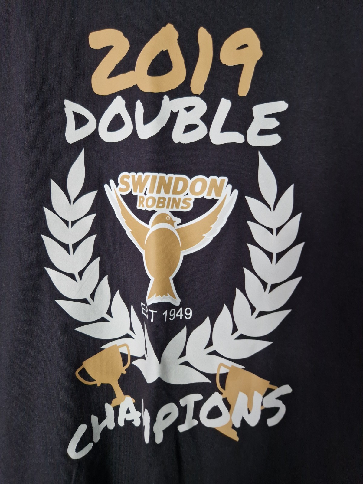 SWINDON Robins Speedway 2019 Double champions black cotton Tshirt size Large good condition see pictures as they form part of the description