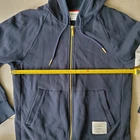 The THOM BROWNE 4-Bar Zip-Up Cotton Hoodie in Size 2 is a stylish and classic piece perfect for men looking for a high-quality activewear option. Featuring a striped pattern, zip closure, collared neckline, and a variety of accents such as crochet, fur trim, and sequins, this hoodie offers a personalized and eye-catching look. Made from breathable cotton fabric, it is suitable for all seasons and includes features like a hood, pockets, and a lightweight design. Whether for gym training or casual outings, this navy blue hoodie is a versatile and fashionable choice from the renowned Thom Browne brand.