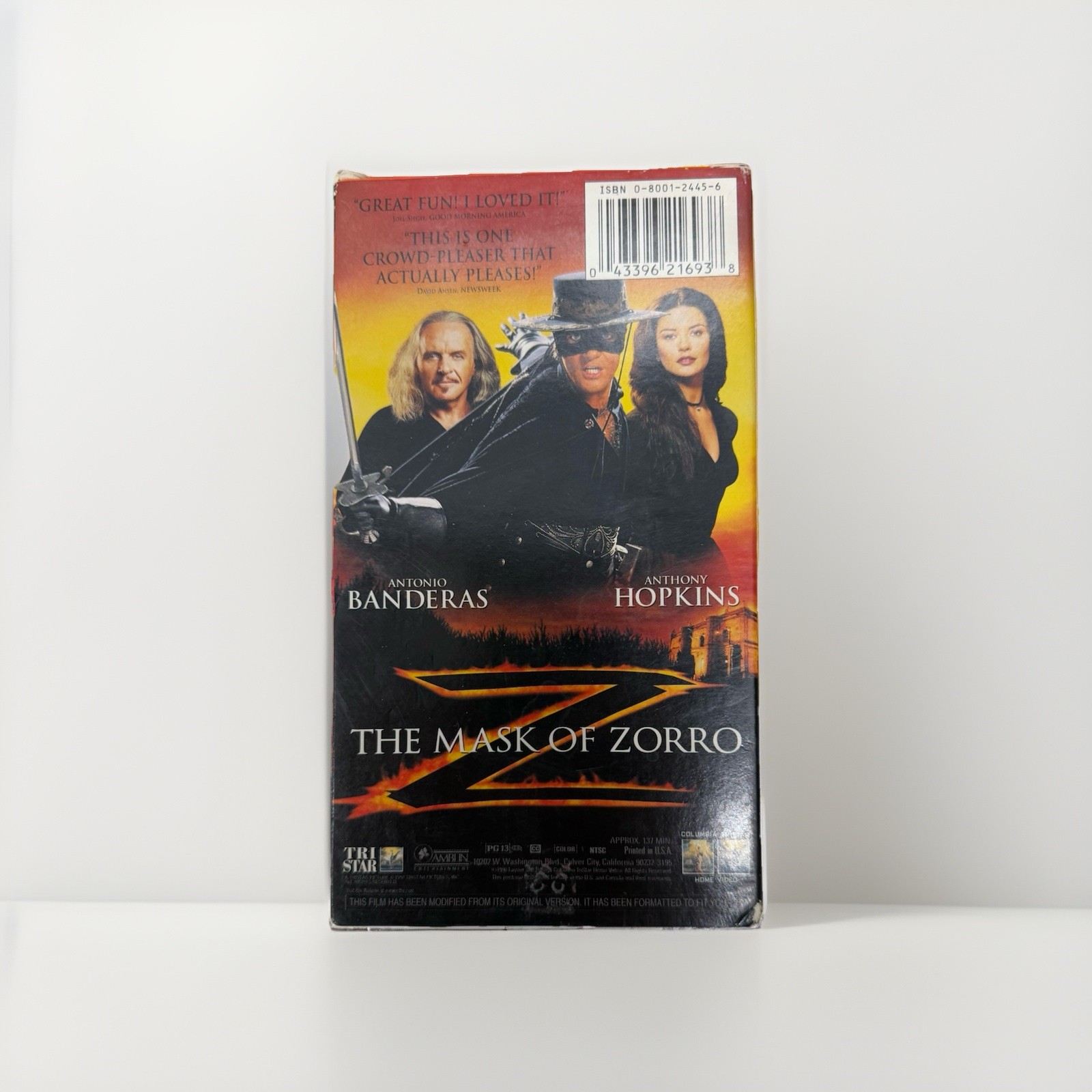 "The Mask of Zorro" is a VHS tape from 1998 starring Antonio Banderas and Anthony Hopkins. Directed by Martin Campbell, this action and adventure film follows the story of the disguise and deception of Zorro, a sword and sorcery genre. The film also includes elements of escape, adventure, family, romance, and chase scenes. It is in NTSC signal standard, has a PG-13 rating, and is in English language with a full screen edition. Produced by Sony Pictures, this United States film is a thrilling and entertaining addition to any movie collection."