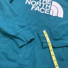 Embrace the outdoors with The North Face Men's Hoodie in a stylish teal color, featuring the iconic Half Dome graphic print. This pullover is designed for comfort and durability, crafted from a cozy blend of cotton, polyester, and cotton blend fabrics, making it an ideal choice for hiking, walking or simply enjoying a casual day out. With its soft fleece fabric type, it provides warmth without the weight. The hoodie comes in a large size with a relaxed fit, ensuring ease of movement. It boasts a round neck and long sleeves, along with a convenient drawstring closure for adjustable comfort. Noteworthy features include a hooded design, pockets for essentials, and a classic sporty look that's perfect for any outdoor activity or casual setting. Care is easy with machine washability, making this hoodie both a practical and stylish addition to your wardrobe. See photos for details, measurements and condition. Nice hoodie!