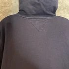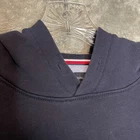 Good Pre Owned condition. The strings have been pulled out and are MIA. There is also a stain on the back. Please see photos for details. SUPER FAST SHIPPING!!! We ship next business day! If you aren't happy with your purchase we offer 30 day FREE returns. No questions asked! Tommy Hilfiger Men Classic Preppy Striped Logo Mixed Media Pullover Hoodie L