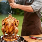 Premium Quality Stainless Steel : Made from food-grade stainless steel, this turkey fryer stand ensures superior strength and durability, the high-quality material guarantees long-lasting use, making it perfect for both home cooks and professionals. Premium Quality Stainless Steel : Made from food-grade stainless steel, this turkey fryer stand ensures superior strength and durability, the high-quality material guarantees long-lasting use, making it perfect for both home cooks and professionals. Prevents Scorching for Perfect Frying : The unique design of the rack prevents the bottom of the fryer from scorching, ensuring that your turkey is cooked to perfection — crispy on the outside and juicy on the inside,enjoy deliciously fried poultry without worrying about burnt edges or uneven cooking. Versatile Cooking Solution : Whether you're frying a turkey or roasting a chicken, this stand is perfect for all your poultry cooking needs, it is especially recommended for holiday occasions like Thanksgiving and Christmas, giving you a professional-quality cooking experience. Versatile for Various Poultry Sizes : Designed to handle both small and large poultry, this rack is perfect for frying or roasting chickens, turkeys, ducks, small geese, and more. Complete Kit for Easy Use : turkey rack set includes everything you need for safe, efficient cooking: 1 vertical rack, 1 drip pan base, 1 lifter hook, and all necessary bolts and nuts, the easy-to-assemble components make this a convenient all-in-one solution for frying, roasting, and grilling.
