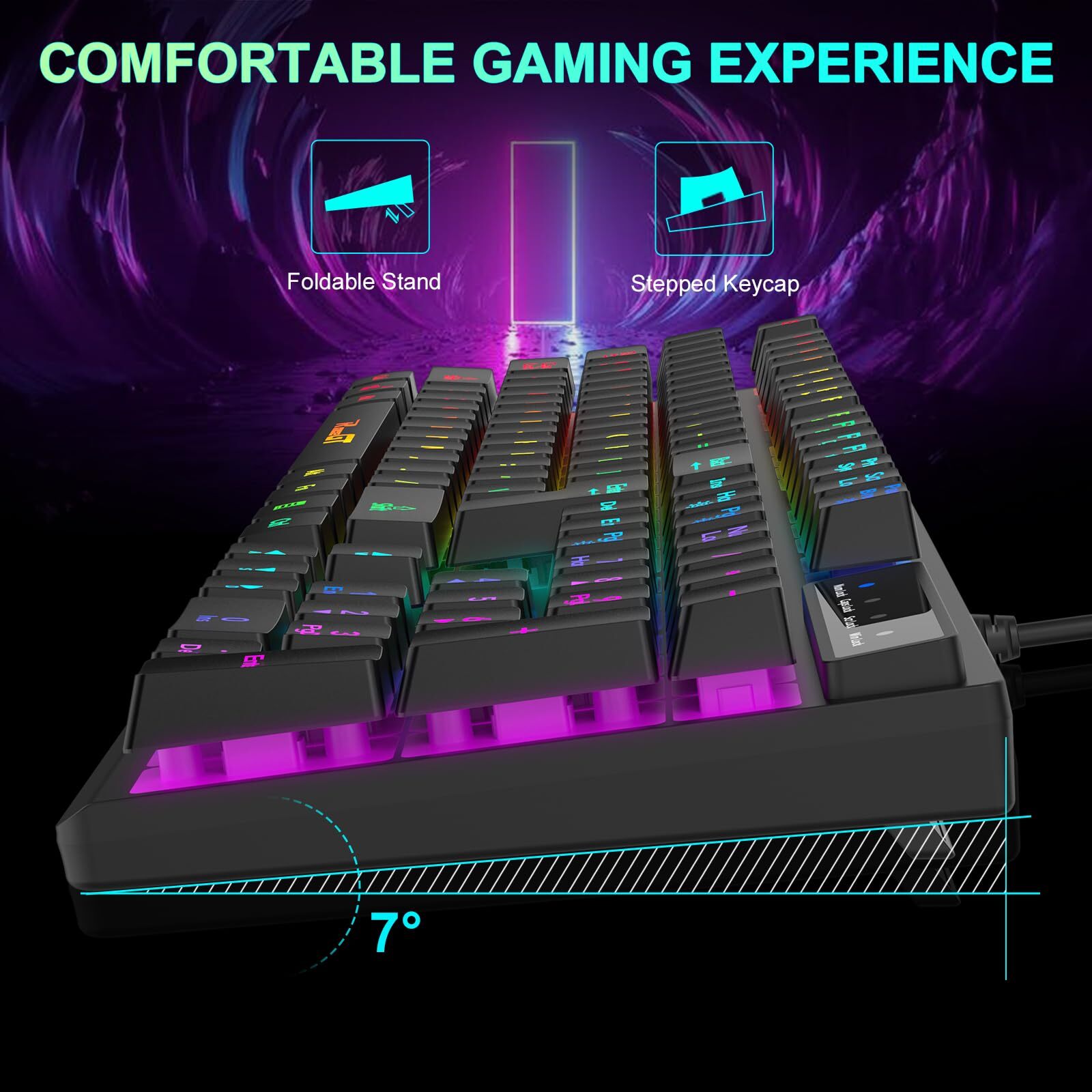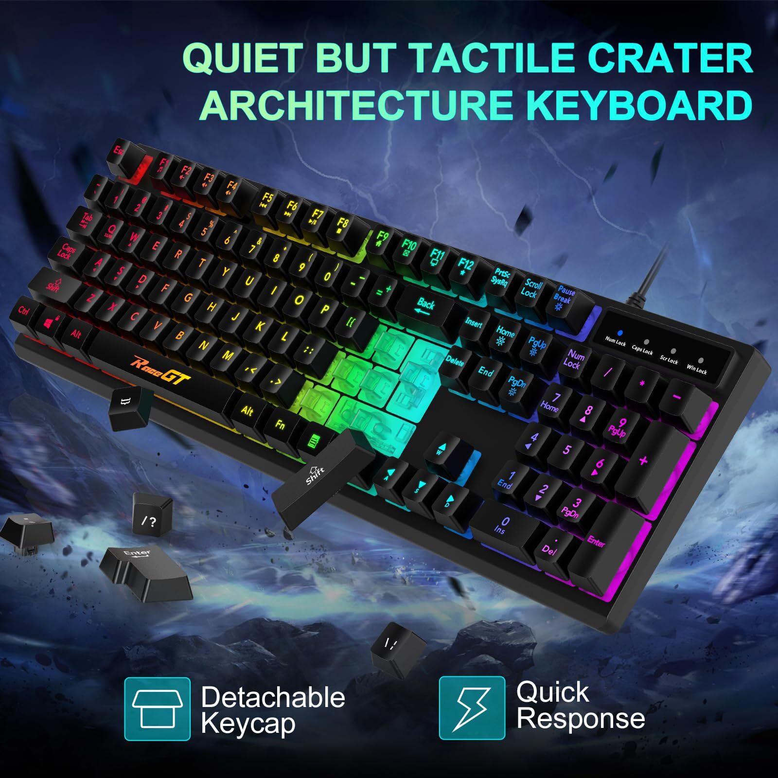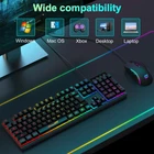 ⌨【2-in-1 Game keyboard Mouse Combo】The gaming combo includes an RGB backlit computer gaming keyboard and an RGB gaming mouse. Two-in-one pc game value kit, Fantastic for Gamers.The gaming keyboard and mouse are designed to be plugged and played, With its fast response and plug-and-play setup, you can start gaming right away without the need for complicated software or drivers. ⌨【Cool Rainbow Backlit Keyboard Gaming】The wired gaming keyboard provides an immersive gaming experience, with adjustable light brightness to suit your needs. 104 Keys Full Size Keyboard. Featuring standard keyboard layout with F-keys (function keys) and number pad. Adjustable stands offer your hands to gaming in a more comfortable position, which help reduce hand fatigue. ⌨【High Sensitivity Gaming Mouse】 6 adjustable DPI (1000, 1600, 2400,3200, 4800, 6400). High speed transmission technology makes it move faster and more accurate. 6 preset levels of DPI meet the needs of different scenarios. 7 different mouse lighting modes create a stimulating and tense gaming atmosphere. 7-button design to meet your different gaming needs. ⌨【Reliable Quality& Comfortable Experience】The pc keyboard and mouse are built with high-quality materials, offering a sturdy and durable design that can withstand even the most intense gaming sessions. The removable keycaps make cleaning quick and easy, without worrying about dust or dirt. ⌨【Reliable Performance & Wide Compability】Windows 10, Windows 8, Windows 7, Windows Vista, or Windows XP, Limited Mac OS keyboard support. Works well with all major Computers Brands and Gaming PCs.