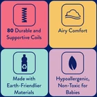 The Pediatric 800 Crib Mattress and Toddler Bed Mattress offers 80 durability tested, extra firm posture supportive coils that respond to movement while thick and airy cushioning provides support and comfort all around. This bed mattress has hypoallergenic materials and no added flame retardants, making it a safe space for slumbers. The crib mattress also has a reinforced waterproof surface that protects mattress inside and out and can easily be cleaned with a damp cloth. An airflow pocket allows the mattress to safely breathe without metal vent holes – an original design. The Pediatric is tested for safety including GREENGUARD GOLD Air Quality Certified to help ensure a healthier sleeping environment for babies (the GOLD standard is a stringent test for children's products). It also complies with the CPSIA testing, is made without lead or harsh phthalates, and conforms to ASTM crib mattress standards for safety and quality including firmness, fit and durability. Lastly, the Pediatric fits U.S. standard cribs and toddler beds (measures 51.63” L x 27.25” W x 5” H) so you can pair it with your favorite crib or toddler bed. is a family-owned and operated company, a premier crib mattress/toddler mattress manufacturer that parents have depended on for decades. Family-owned and operated premier crib mattress manufacturer that specializes in crib mattress design and safety standards Waterproof, wipe-clean cover and waterproof lock-stitched binding Airflow pocket helps mattress to breathe without metal vents, an original design 80 durability-tested extra firm heavy-gauge steel coils for posture support Conforms with ASTM crib mattress standards, fits all US standard size cribs and toddler beds Reinforced, durable, tear-resistant cover Available in a variety of colors: White Embossed, Ecru Gray Squares, Mint/Gray Woodland Owls, and Pink Enchanted Princess GREENGUARD GOLD Air Quality Certified for a healthier indoor environment Ultra lightweight bed mattress weighs only 10 pounds to lift and change the sheets Airy, hypoallergenic support and comfort cushioning made sustainably