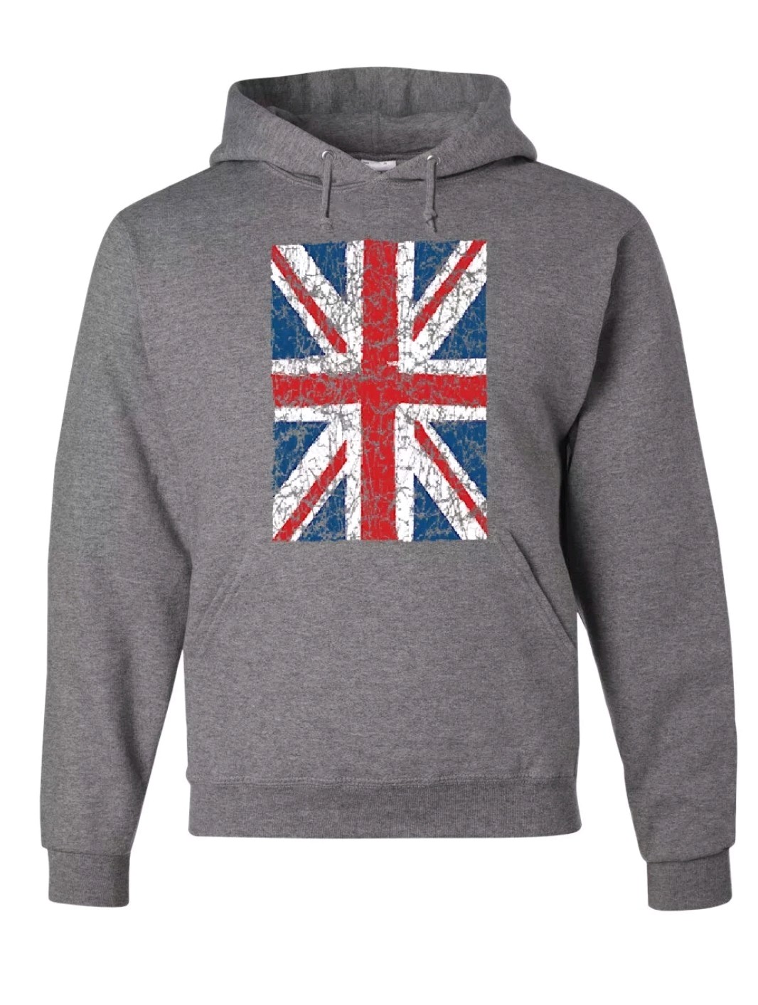 This Union Jack Hoodie is a stylish and patriotic garment featuring a distressed British flag design, perfect for showing off your UK pride. Made from a comfortable cotton blend fleece material, this hoodie is machine washable for easy care. With a crew neck and long sleeves, it offers a regular fit for a cosy and comfortable wear. The hooded style adds a practical touch, making it a versatile addition to any wardrobe, suitable for both men and women in all sizes. Designed by THE QUEEN brand in the United Kingdom, this hoodie is a must-have for those who love their country and want to make a fashion statement.