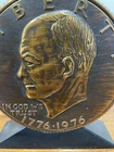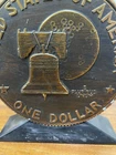 The vintage Liberty Bell Bank celebrates the Bicentennial of the United States with a design featuring President Dwight Eisenhower and the years 1776-1976. Made of plastic, this original reproduction is a collectible still bank perfect for showcasing American history and patriotism. The bank is a unique piece that captures a significant moment in the nation's past and serves as a reminder of the bicentennial celebrations of the United States. READ, has some wear on the top and sides of coin. See photo.