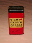 YOU ARE BIDDING ON...... VINTAGE EIGHT O'CLOCK COFFEE FOR SAVINGS TIN COINS BANK .... ... MEASURES APPROX 4" HIGH.. ..SHOWS USAGE/HANDLING WEAR/SCRATCHES/PAINT LOSS/AGE DISCOLORATION /FEW DINGS ........... .PLEASE VIEW PHOTOS FOR CONDITION.***PLEASE E-MAIL IF YOU HAVE A QUESTION OR WANT AN ADDITIONAL PICTURE....PLEASE VISIT MY EBAY STORE FOR ADDITIONAL VINTAGE ITEMS..THANK YOU*** 77661212