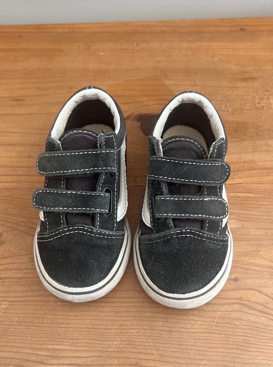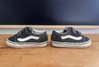The Vans Old Skool Toddler Shoes in size US 7.0 are a stylish and comfortable option for young children. These black sneakers feature a Velcro closure for easy on and off, making them practical for everyday wear.