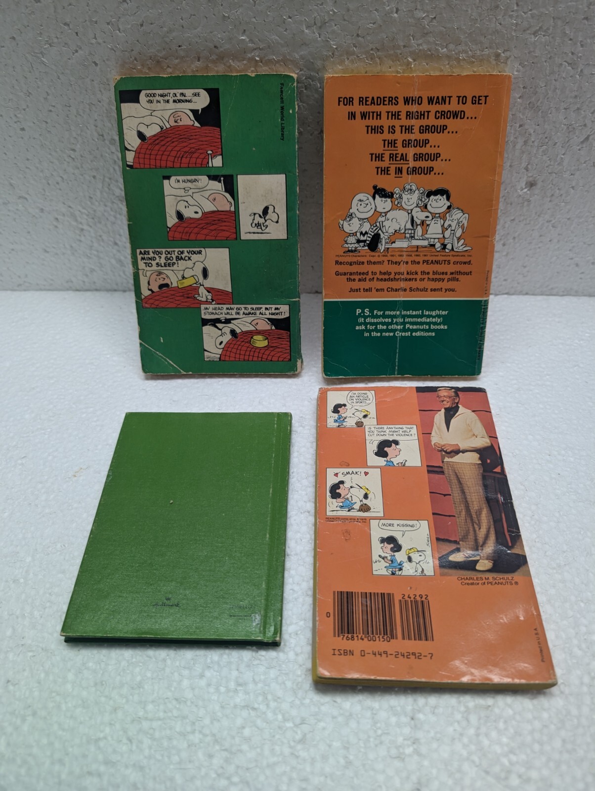 Vintage 1970s Fawcett paperback books featuring the beloved PEANUTS characters, Charlie Brown and Snoopy. This lot of 4 books by Peanuts creator Charles Schulz is a must-have for fans of the iconic comic strip series. Published in English, these classic comics offer a nostalgic glimpse into the era of the 1970s, making them a perfect addition to any collection. Each book is illustrated with Schulz's signature style, capturing the essence of the Peanuts gang in their humorous and heartwarming adventures. Ideal for book lovers and comic enthusiasts alike, this set of vintage Peanuts books is a charming find for anyone looking to revisit the timeless world of Charlie Brown.
