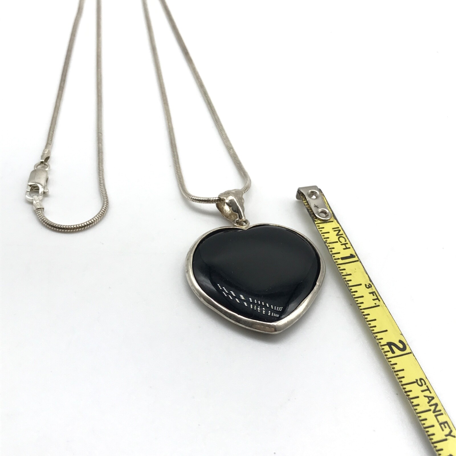 Vintage Solid 925 Sterling Silver Black Onyx Heart Pendant On Chain Necklace 24" I tem details: Chain length: 24" Pendant size: 1.70" long by 1.25" wide Weight: 19.8 grams Marking: 925 - Please note, most of my store's items are vintage or pre-owned. Most items are in very good/good estate condition, but please also view all pictures. Well cared for. All sterling silver is marked 925 or tested. Please feel free to ask any other questions you may have! I also combine shipping. - Jewelry is shipped packaged securely with a gift box or pouch . - I typically will ship same or next business day! - Thank you so much for shopping with me and please check out my other jewelry listings, I post new items daily!