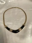 VTG CHRISTIAN DIOR BLACK ENAMEL CLEAR RHINESTONES GOLD TONE FLAT LINK CHAIN Shows Some Wear Back Side Of Enamel Design, Minor Wear Chain & Clasp, Consistent With Age. SEE ALL PICTURES