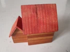 This is a Vintage Folk Art Painted Wooden National Savings Bank Coin Bank. It is an original piece made of wood in the United States. This coin bank features unique folk art painting and serves as a decorative and functional item for saving money. Missing plug