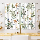 Product Material: This floral kitchen curtains are made of high quality polyester fabric. Very soft touch and smooth. Product Including: Sold as 2 curtain panels, each panel measures is 27.5 inches width, 39 inches length, 2 panels width is 55 inches. With 3\u201d diameter sewn rod pocket fit these curtains up to 1.5\u201d standard curtain rod well. Light Filtering: Farmhouse flower kitchen curtains�?00% premium material, 50% light filtering, soft material, good abrasion resistance and drapability, protected your privacy. Wide Usage: These solid window curtains are available for bedroom, living room, dining room, kids\u2019 room, nursery, kitchen, café, hotel, office or even outdoor decorations. Easy Care: Machine washable in cold water, do not bleach, tumble dry low, iron on lowest setting if needed. Feel free to contact us for any product problem, we will certainly respond within 24 hour.