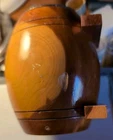 This vintage pre-owned handcrafted wood barrel shape bank is a unique collectible item from Carolina, N.C. measuring 3"X4". The bank features a piggy design and is an original piece made in the United States. It is a great addition to any collection of still banks and other collectible items. See scans to help see the condition.