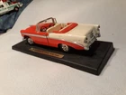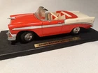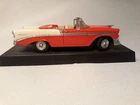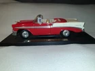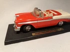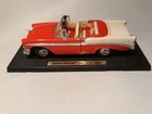 This vintage replica Chevy Bel Air is a must-have for any classic car enthusiast. The red and white color scheme perfectly complements the diecast material, making it a standout piece in any collection. With its display stand, this car is perfect for showcasing in any living space or office. The 1956 Chevy Bel Air is a classic model that has been faithfully replicated in this diecast toy. It is part of the Character Family of Classic Cars and is sure to be a beloved addition to any collection. Whether you are a fan of Chevrolet or just appreciate the beauty of vintage cars, this Vintage Replica Chevy Bel Air is a great choice. Some scuffs to the paint. See pictures. Sold as pictured.