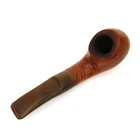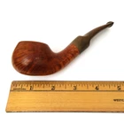This vintage Italian smooth briar Diplomat shape pipe is quite the handsome accessory. Measurements: approx 5-3/8” at the longest. The bowl is about 1-3/8” high x 1-1/2” wide. Markings: the only mark is impressed country name of Italy. Condition: the pipe has been smoked and there is some dry black smoke residue around the rim. I am not a pipe aficionado, so please feel free to ask questions. H352