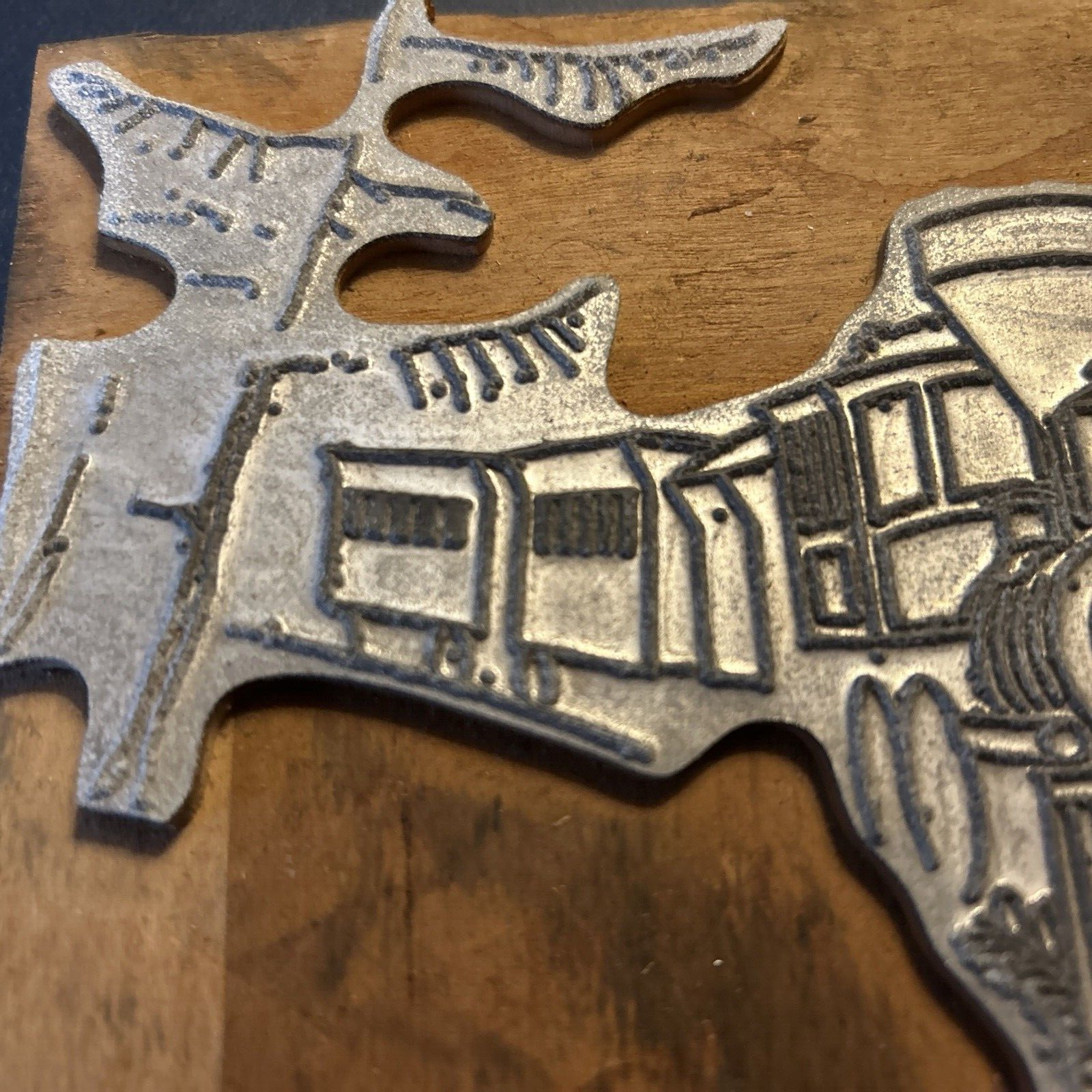 You are bidding on a vintage letterpress type block(s) that were used in the printing business in 1940 until the late 1960s. Most were was used by either Richardson Printing in Marietta, Ohio or the Noble County Leader in SE Ohio. Please see my other auctions for more great printing pieces. I have a lot of pieces and will continue to list them. All pieces are original with most appearing to be from around Most are mounted on wood blocks that are one inch high. The metal is normally copper or zinc. A small percentage are solid metal, they tend to be significantly heavier than the wood and copper ones. Blocks with letterpress printing were always in reverse. The blocks would be used with others to make a mat that was then used to make a plate for printing. Printing blocks for lineart and halftone printing are typically made from copper or zinc. I have seen some that appear to be aluminum. A few have been solid metal and are very heavy. 95 percent of them appear to be copper. I have never seen a steel one. I would think that would be very hard to work with. The process to make these were a chemical etching process. The process to make Linotype used antimony, and tin, and is typically composed of 84% lead, 12% antimony, and 4% tin. Linotype machines were general used with type blocks to make a complete page. All blocks are original and were used in the printing industry. See my other auctions for additional vintage printing blocks