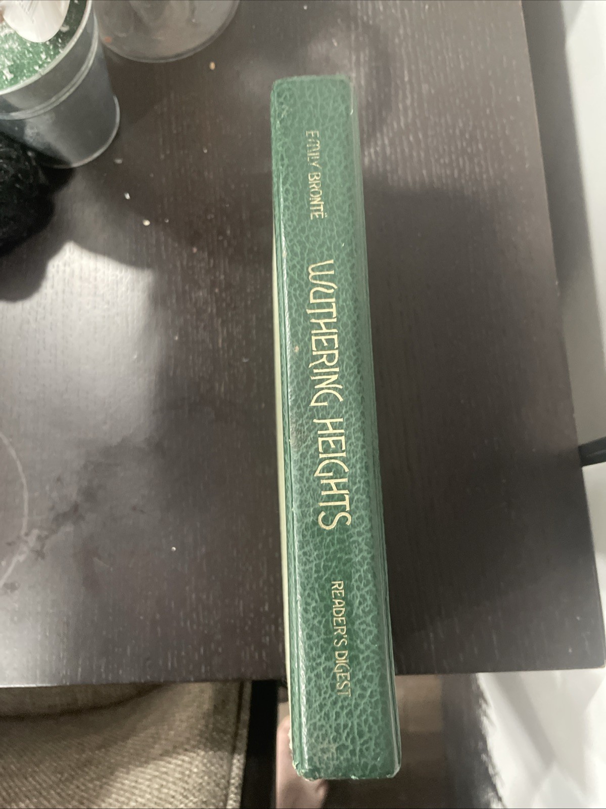 It is the 1983 Reader’s Digest edition of Wuthering Heights. It is mostly in excellent condition, there is some minor stains on right end of the boom and bottom edge of the book is slightly frayed on the back cover. The four piece insert page that came with the book which contains background information on the book is still present.