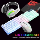 【UK LAYOUT 104 KEYS GAMING KEYBOARD】 The full-size gaming keyboard has 104 keys and is a uk layout. The wired gaming keyboard is made of HIPS material, and the floating keycap can prevent the inflow of liquid, so it can be used with confidence. The wired keyboard has a key life of 25 million times, making it an ideal keyboard for office work and games. There are 12 multimedia shortcut keys for easy operation. Plug and play, responsive. 【WIRED BACKLIT GAMING KEYBOARD】The UK layout gaming keyboard has a cool rainbow LED backlit, with two backlight effects: constant light and breathing. Two-color injection-molded keycaps, the characters have good light transmittance and wear resistance. The characters can be clearly seen even when the backlight is turned off. Press FN+SL to turn off /on the backlit; FN+PS to switch to breathing mode; FN+↑/↓ to adjust the brightness; FN+-/= to adjust the breathing speed. 【WIRED BACKLIT GAMING MOUSE】The wired gaming mouse has 3 levels of adjustable DPI (1200-1800-2400). The cracked appearance design makes the multi-color breathing cycle lighting effect of the backlit gaming mouse vividly and vividly, which can set off the immersive gaming atmosphere in the dark night. The wired mouse is made of ABS material, matte texture, comfortable hand feeling. The ergonomic design can relieve hand fatigue. 【RGB BACKLIT GAMING HEADSET】This high-sensitivity wired gaming headphones has excellent 3D stereo surround sound and cool RGB lights. The adjustable noise reduction mic makes the sound transmission more accurate, clear and smooth, allowing you to enjoy games and music happily. 3.5mm wired backlit earphones use soft protein cotton material to make the earmuffs comfortable to wear. Adjustable headphone strap, suitable for most players. (2 in 1 transfer line included). 【PLUG AND PLAY】This wired 4-in-1 gaming keyboard and mouse set has extensive compatibility. The wired gaming keyboard and mouse set supports Windows XP, Win 7/8/10, Mac OS and other systems. The backlit wired gaming headset is compatible with Switch,PS4, PS5, XBOX One, PC, laptop, computer, mobile phone and other devices. [Note: The old version of XBOX requires an additional adapter, not included ]