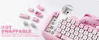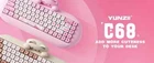 Product: YUNZII C68 Layout: 65% Layout, 68-Key RGB: South-facing RGB Color Choices: Pink, Coffee Switch Choices: Cocoa Cream V2 Early Bottoming, Caramel Coffee V2 Mute Linear, Milk Linear Battery: 4000mAh Connection: Wired Type-C/Bluetooth/2.4G Wireless Size of Product: 380*181.1*70.9mm / 14.96*7.13*2.79inch Weight of Product: 1590.5g±10g / 3.51lb±0.02lb Keycaps: Double-shot PBT MOA Profile Keycaps Hot Swappable: YES NKRO: YES Keyboard Case: Silicone 【65% Layout, Adorable Cat-Inspired Design】 Enjoy a unique cute keyboard with YUNZII innovative kawaii cat design crafted from high-quality silicone material. The cat head of the keyboard is detachable. You can replace other heads in the future. The 65% layout 68 keys mechanical keyboard is compact and functional. This cute keyboard is suitable for home, office, workspace, outdoor, and casual games. 【Ergonomic Mechanical Keyboard with Excellent Typing Sound】 This silicone keyboard with an ergonomic design reduces typing fatigue. The silky silicone keyboard, along with the oil-sprayed process, makes the keyboard easy to clean. Multiple layers of sound-absorbing fillings, pre-lubed switches, stabilizers, and solid silicone eliminate typing noise, greatly improving the typing experience. 【Multi-Device and Tri-Mode Wireless Connectivity】 YUNZII C68 is compatible with Mac and Windows. The wireless keyboard supports Bluetooth, 2.4G wireless, and wired Type-C connection. It can connect to up to 5 devices at the same time and switch between them easily. The NKRO keyboard can work with tablets, laptops, PC, and smartphone devices. It lasts up to 72 hours of typing with a 4000 mAh battery. 【Hot Swappable Custom Mechanical Keyboards with Full Programmability】 As a hot swap mechanical keyboard, the C68 custom mechanical keyboard has a hot-swappable PCB that supports both 3 or 5-pin mechanical switches, allowing you to change the keyboard switches easily without the need for switch soldering. With Windows software, you can customize unlimited RGB options, macro keys, and remap keys. 【Anti-Oil PBT MOA Keycaps and Vibrant RGB】 The keyboard keycaps are made of PBT material with an MOA profile. The larger contact surface of the keycap makes typing more comfortable and cuter. The RGB keyboard offers 18 RGB modes and 8 backlight colors. The RGB keyboard uses south-facing LEDs, which provide better illumination when using the keyboard in the dark. Its software can be used to custom RGB.