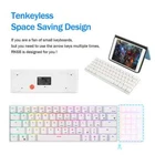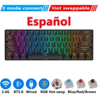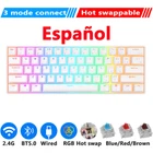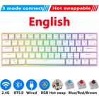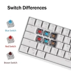 Specifications: Brand Name:RK Royal Kludge Product Model:RK61 Keys Number:61 Keyboard Color:Black/White Axis Body:Blue/Red/Brown Dual Mode Connection: Bluetooh & USB Wired Tri-mode Connection: 2.4G Wireless & Bluetooh & USB Wired Backlit:RGB Layout: 61 Keys 60% Keyboard Layout System: Windows/Android/Mac/IOS Battery Capacity:1450mAh Size:290*100*35mm Feature: 1.Mini 60% 61 Key Keyboard - RK61 mini 60% gaming keyboard is a ultra-compact layout with 61 keys makes you a neat desktop with your organized gears on, even folks have nothing to do with Minimalist will dive into its tiny practical design. Tips you might want to know is that keyboard without numpad is most FPS gamers' choice, more spaces left for mouse movements. 2.Dual Modes Connection - Bluetooth and USB wired way. Extremely low latency in the absence of signal interference.Easily 3 different devices switchable with FN + Q/W/E in wireless mode will hype you up and maximize your productivity. 3.Hot-swappable - Hot-swap PCB allows you to replace 3 pins/5 pins switches freely without soldering issue. Enjoy the fun of making your own unique keyboard. Only tri-modes support hot swap! 4.High-capacity Battery - use continuously about 13 hours with lightest backlit, up to 360 hours standby time. 5.RGB Backlit - 18 RGB backlight modes, 8 monochrome backlight modes and 1 full color backlight. These modes will give you more enjoyable when you gaming or typing at night. 6.Ergonomic Designed - The RK61 is designed with 8° Ergonomic angle which can help you relieve straining effectively.The integrated wrist rest gives you the comfort you need for marathon gaming sessions. 7.DIY Programmable - Software DIY light effect powerful game macros Full-key programmable Hot-swappable Switch: We adopt RK Switch to provide you with a better Typing Gaming experience. You can choose the switch type that best suits you according to your needs. Blue Switch : Blue Switch can offer quicker and springier response, crisp click sound for spring Typing enjoyment, precise tactile feedback for ultimate Gaming performance. Brown Switch : Slightly quieter and easier to trigger than the Blue Switch. Halfway between a Typing and a Gaming Switch. Some people prefer Brown Switch since it enables you to Double Tap faster and typists like them because they still have a good Tactile feedback, but the audio feedback isn't quite as noticeable as Blue Switch. Red Switch : Linear Switch, meaning that the force at the beginning and the end of each stroke is nearly identical. The result is a feel that most perceive as “smoother” and "faster" making them especially popular among Gaming enthusiasts. Red Switch is the best fit switch using in Office.