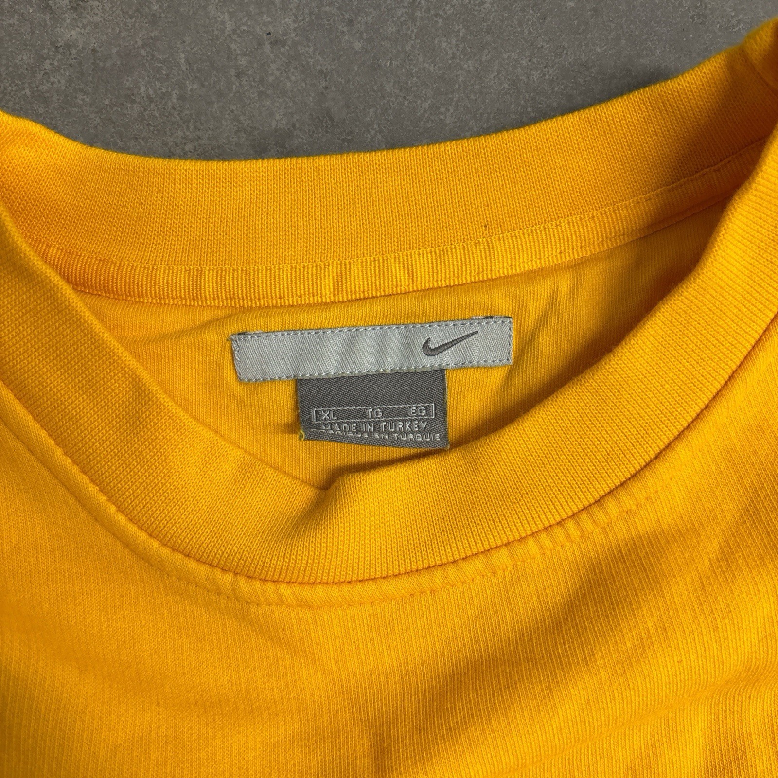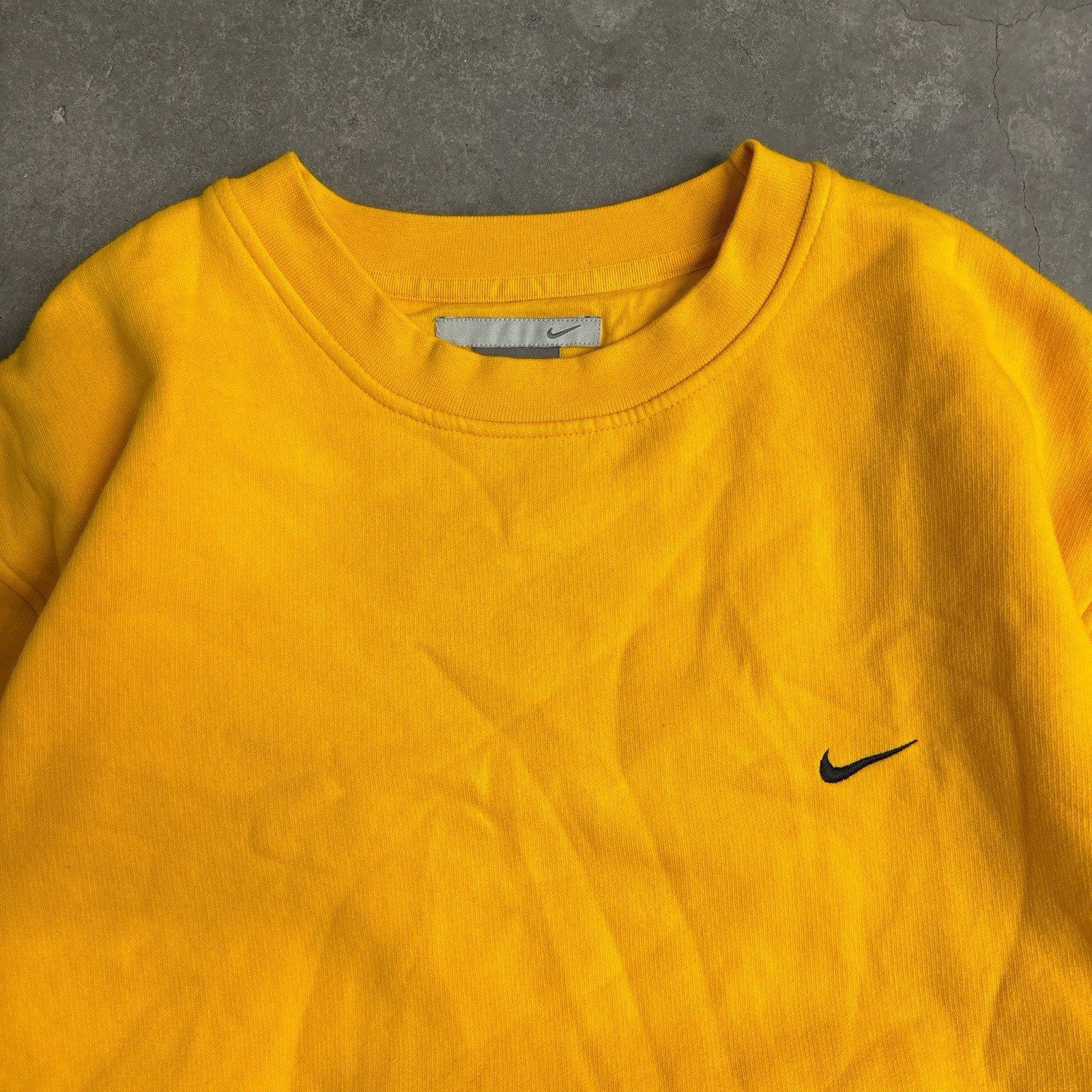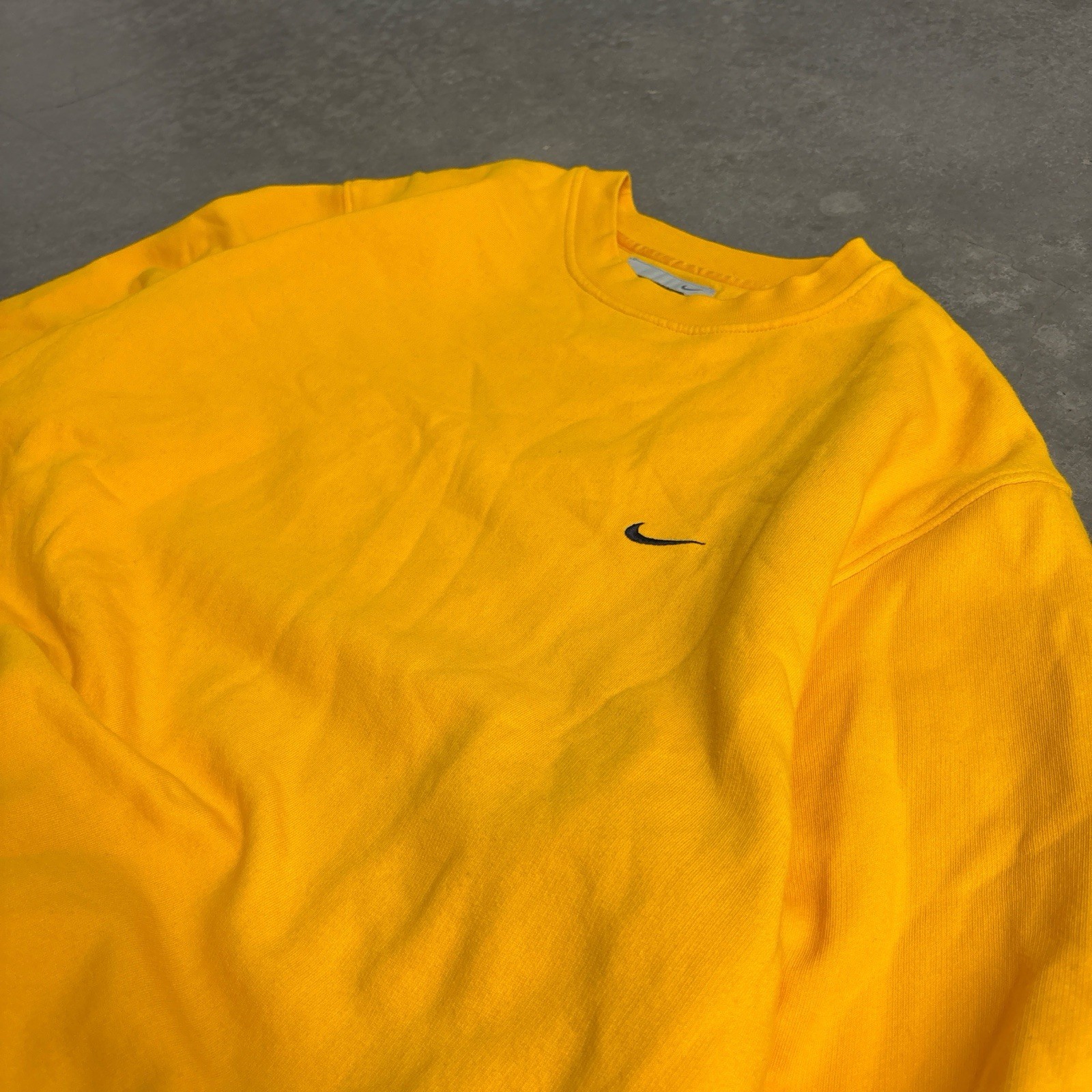 Elevate your casual style with this vibrant YELLOW Y2K Nike Crew Sweatshirt. Designed for the modern man who appreciates comfort and style, this pullover features a classic crew neck and long sleeves, perfect for the cooler days of spring and summer, or as a cozy layer during wintry nights. Its regular fit ensures ease of movement, making it ideal for a range of activities from running and jogging to gym training and leisurely walks. Crafted from a soft blend of cotton, polyester, and cotton blend fabrics, the sweatshirt boasts a solid fleece construction that provides warmth without compromising on breathability. The iconic Nike logo accentuates the piece, giving it a sporty edge. Machine washable for easy care, this sweatshirt is a practical addition to any wardrobe, keeping you comfortable through all seasons.