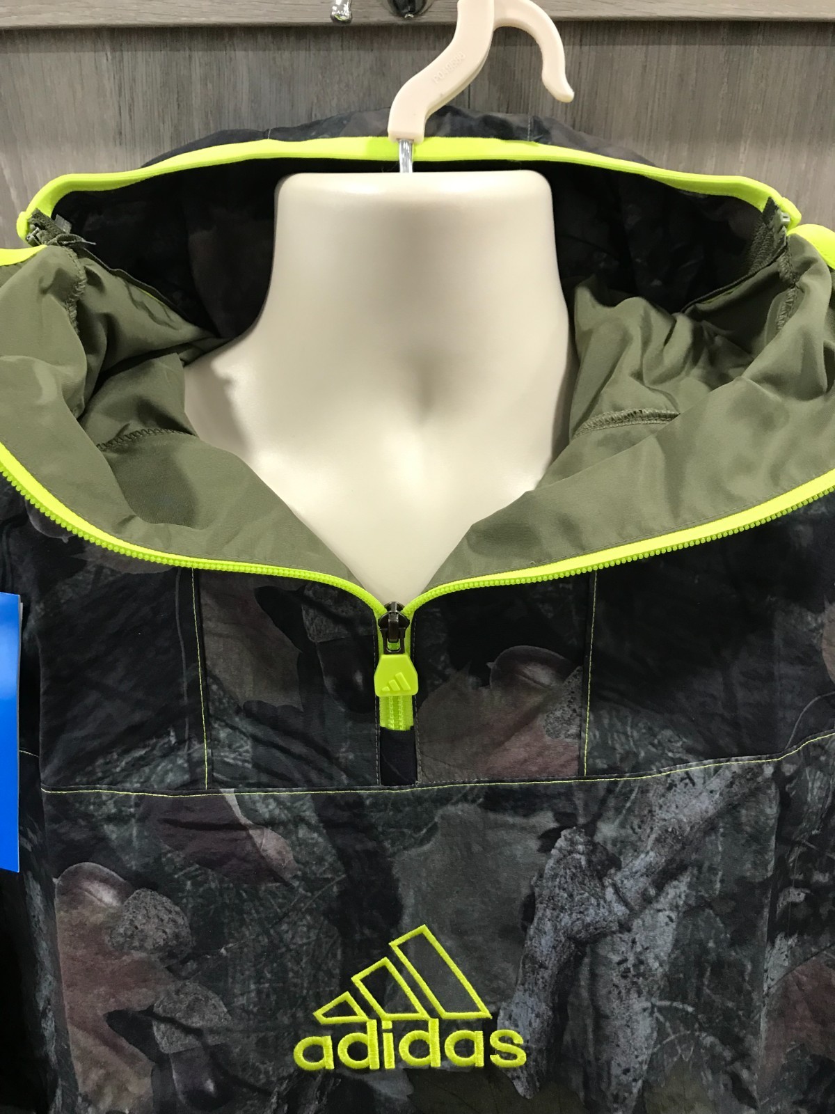 The adidas Originals Men's Olive Quarter Zip Strata Camo Jacket is a stylish and versatile piece of activewear for men. Made from 100% polyester, this hoodie features a camouflage pattern in olive strata color, with long sleeves and a zip closure. It comes in size M with a loose fit and a detachable hood for added convenience. The kangaroo pocket provides extra storage while the lightweight design makes it suitable for all seasons. Perfect for casual wear or outdoor activities, this jacket is a must-have addition to any man's wardrobe. Note: Picture Accuracy is about 90%. Slight variance in color may result, due to lighting and camera default settings.