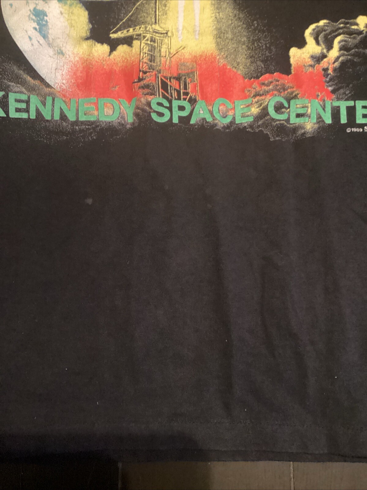 This vintage Kennedy Space Center T-shirt is a must-have for any space enthusiast. The shirt features a classic black color with the iconic Kennedy Space Center logo on the front. Made for men in a regular size L, this T-shirt is perfect for everyday wear or as a collectible item. The shirt is crafted with high-quality materials and designed to last. Its theme of space exploration makes it a great addition to any collection or a unique gift for someone who loves space. Don't miss out on the chance to own a piece of history with this vintage Kennedy Space Center T-shirt. Has some stains as shown on picture